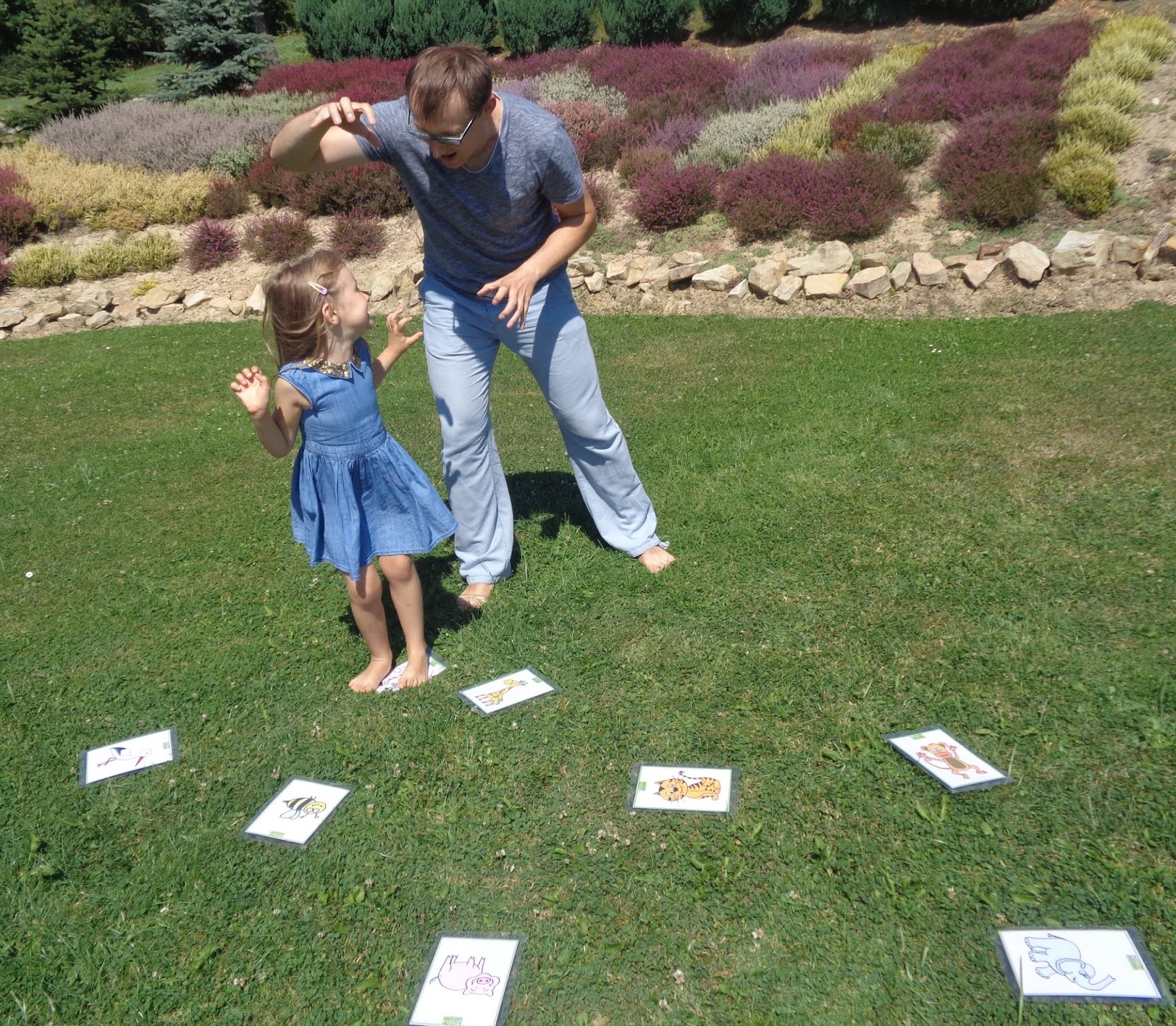Zabawę powtarzam kilka razy z innymi słówkami, które leżą na dywanie.